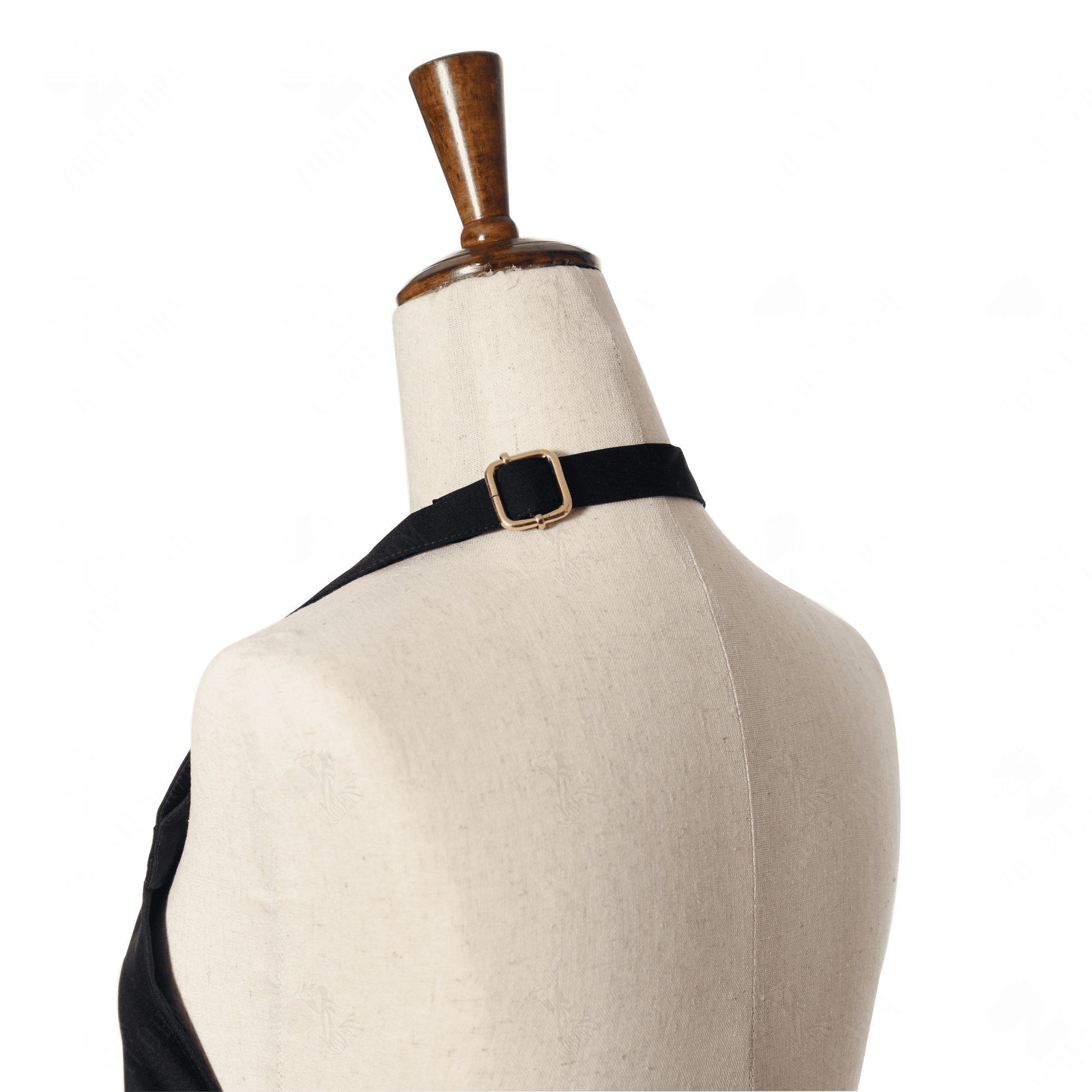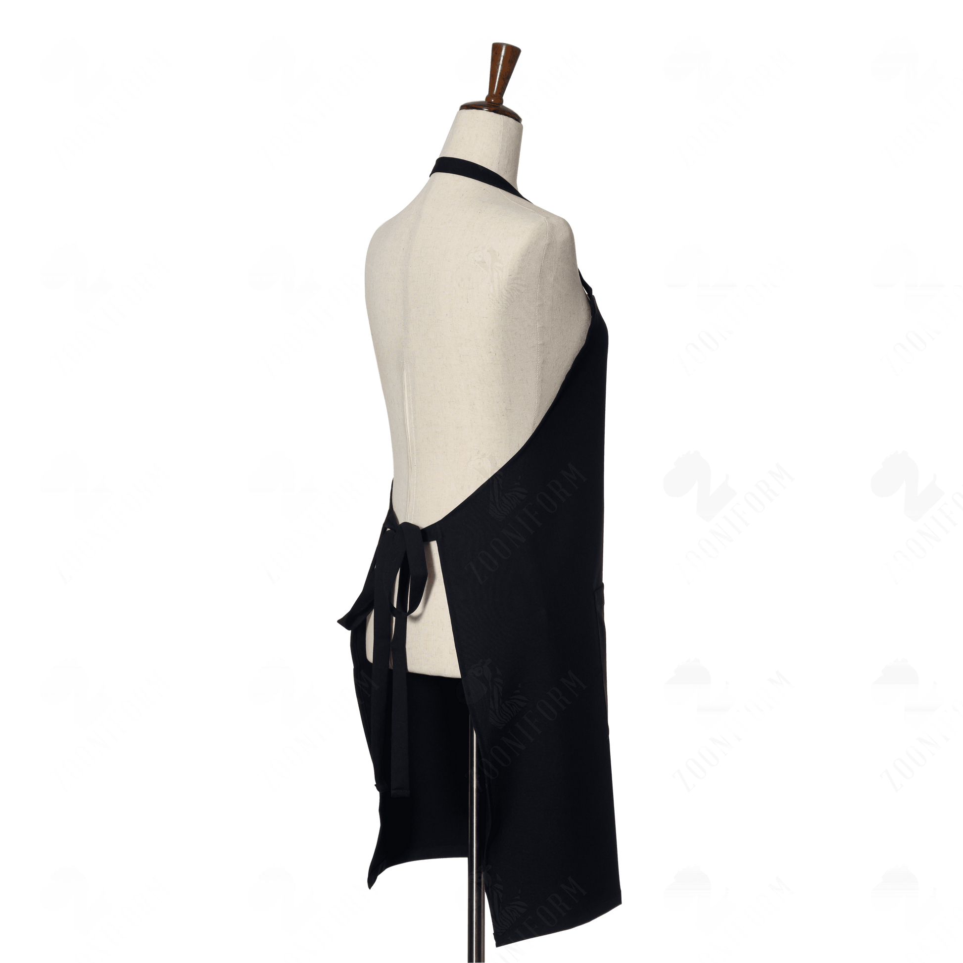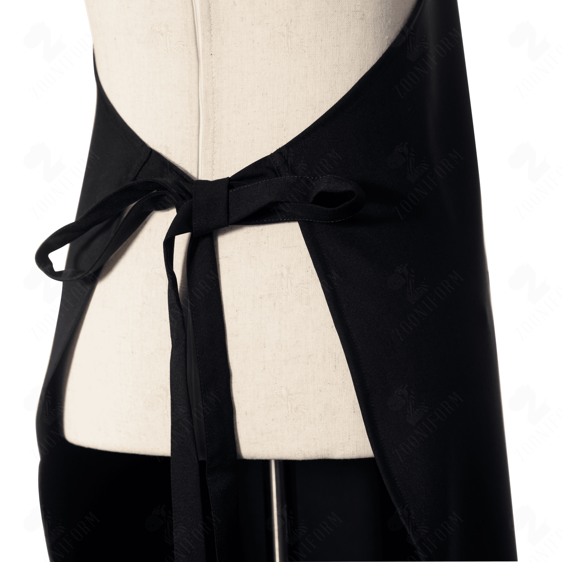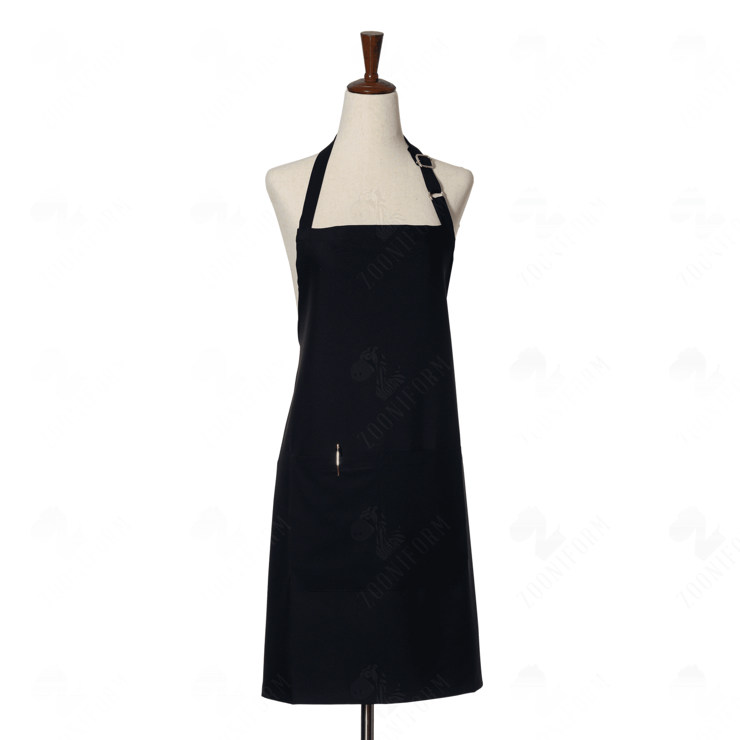 Cotton Black Bib Apron Two Pockets, Adjustable Neck Strap