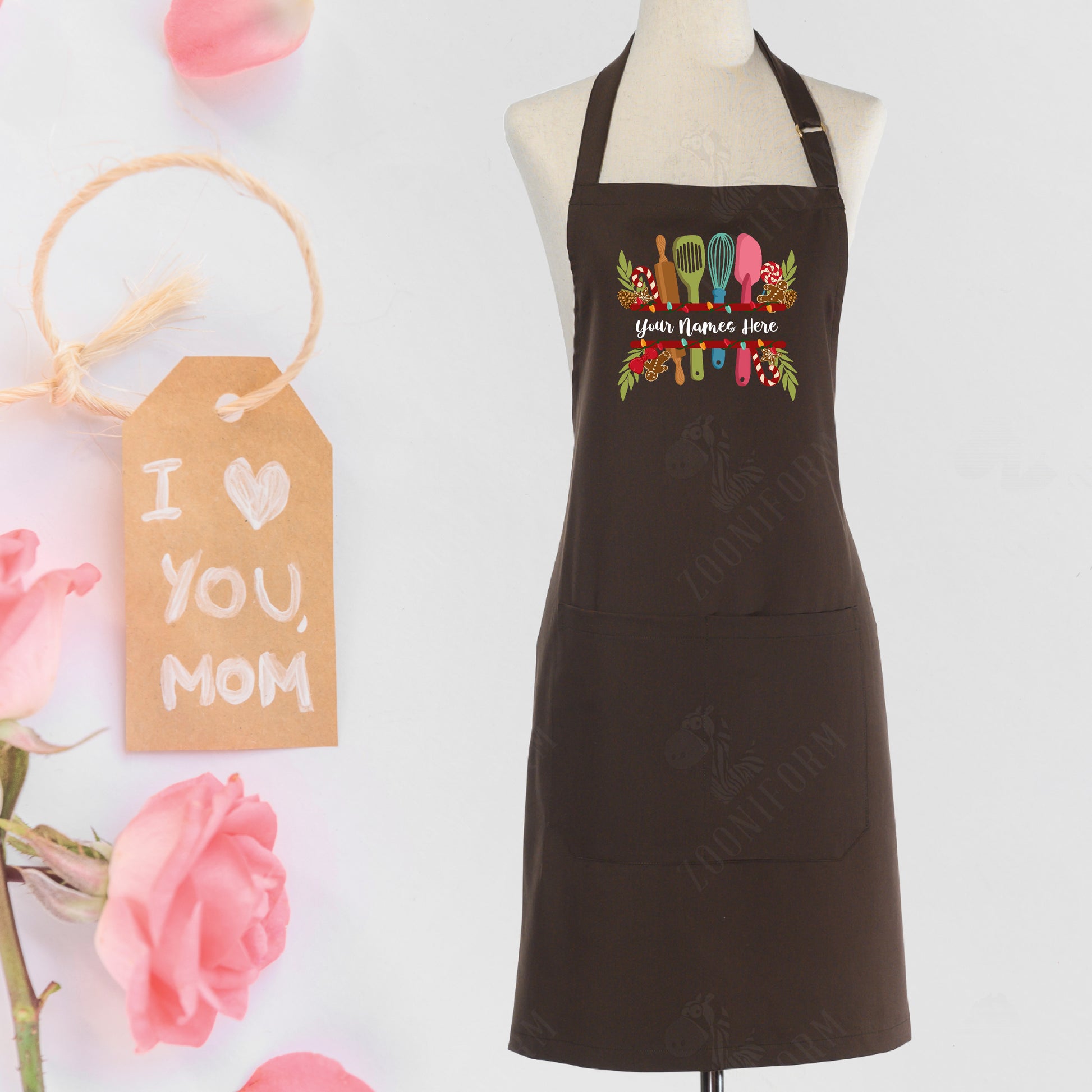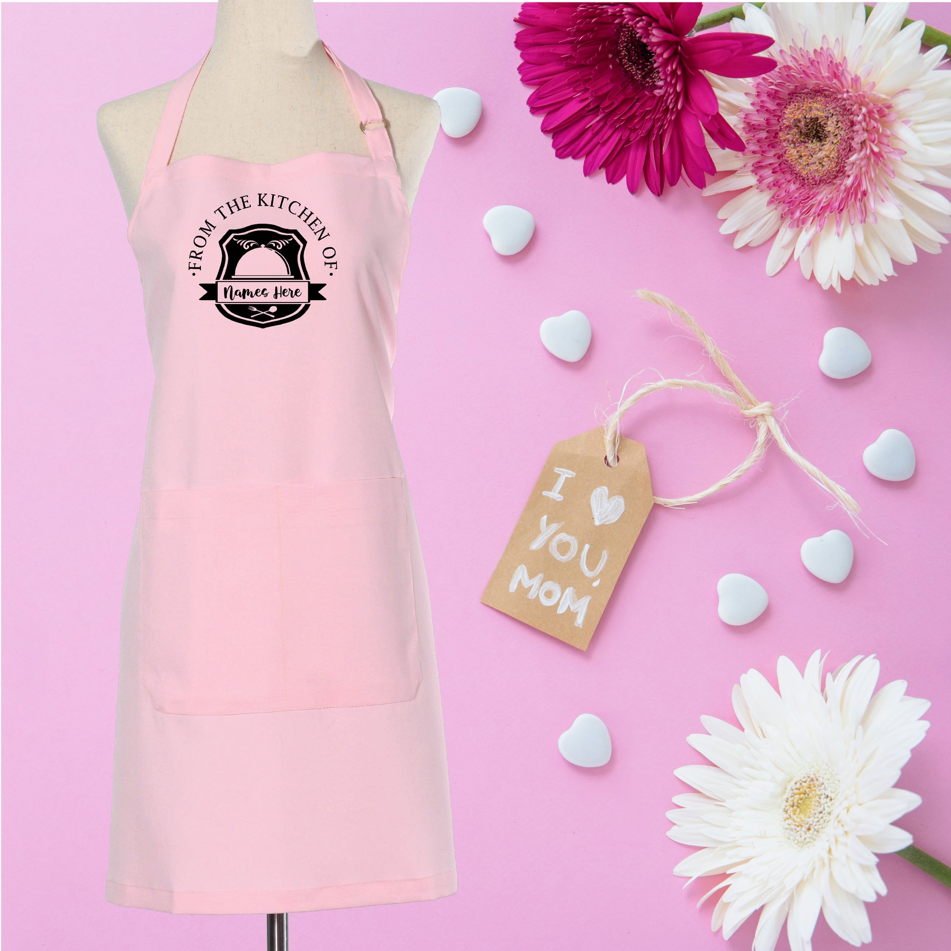 Personalize Name for Kitchen Apron with Two Pockets, Adjustable Strap