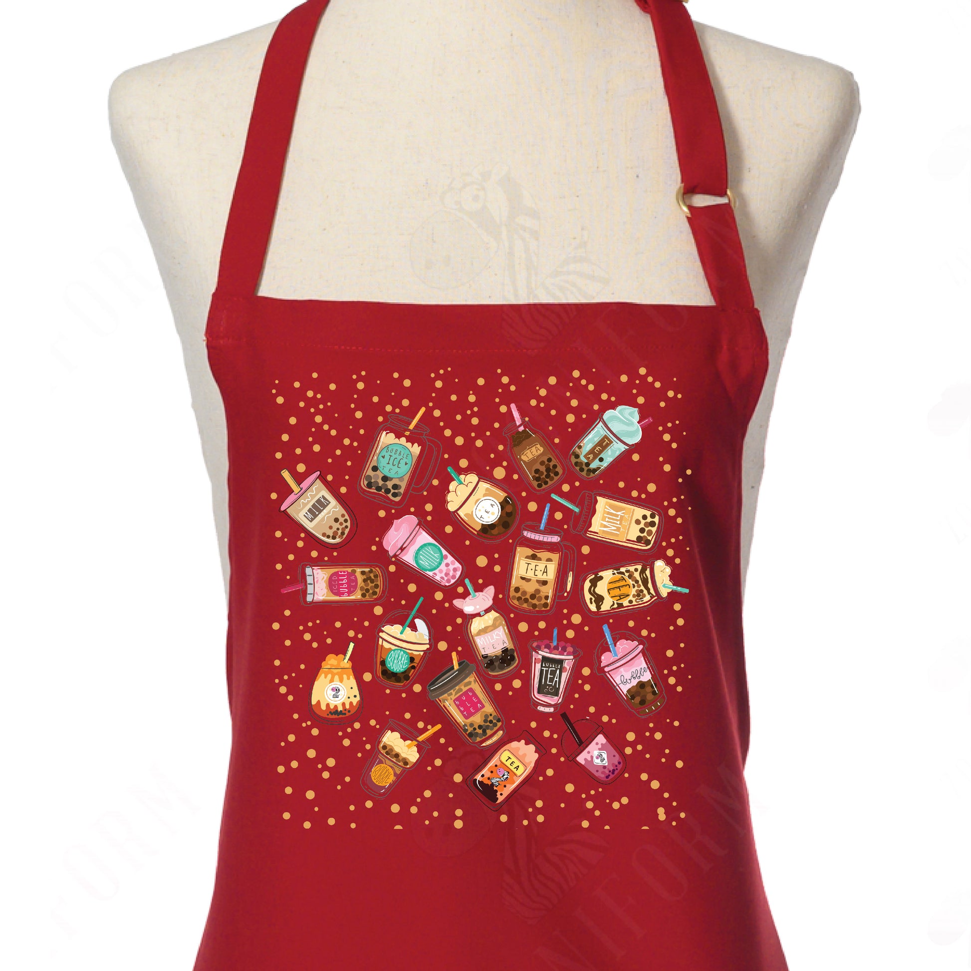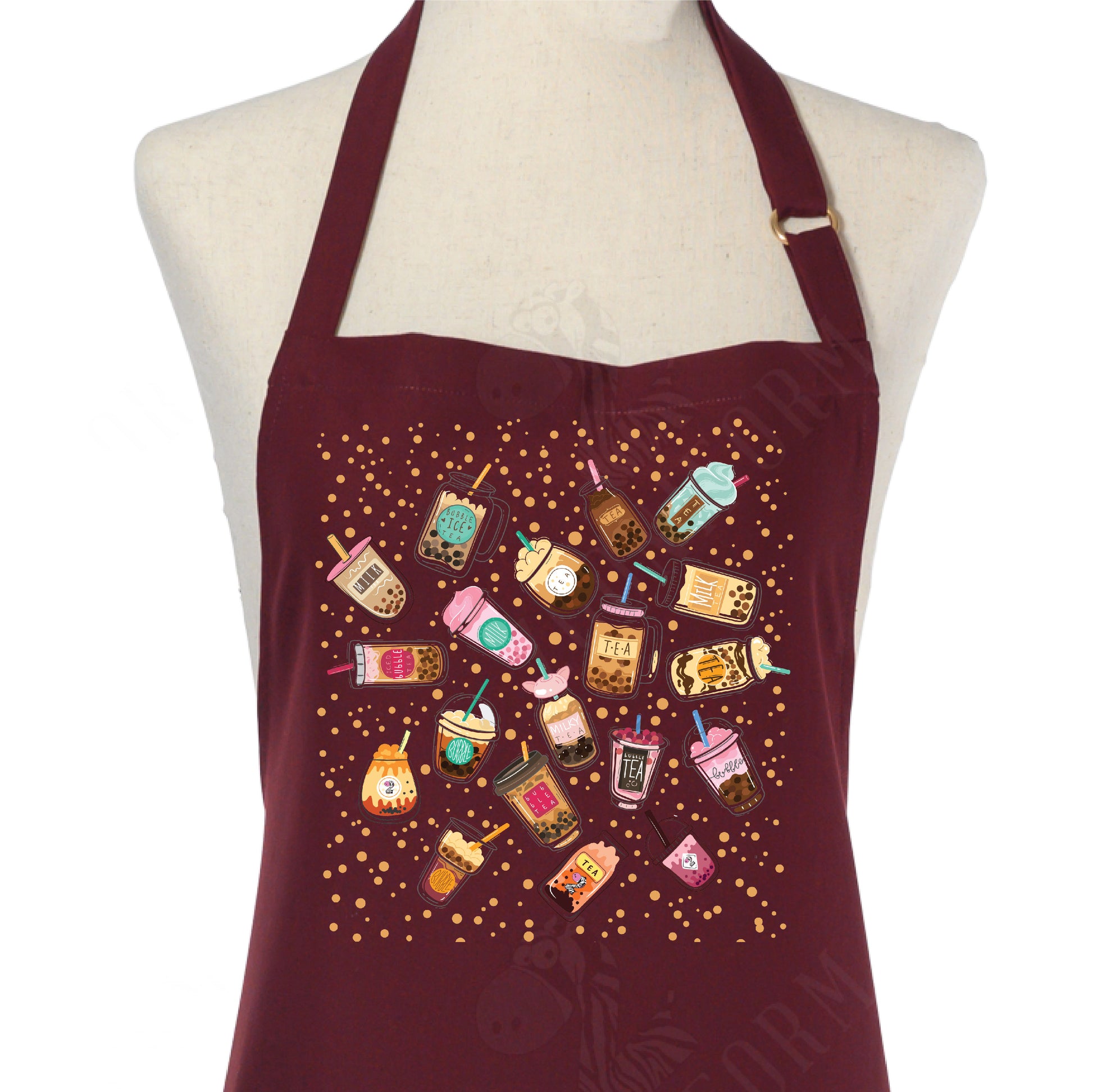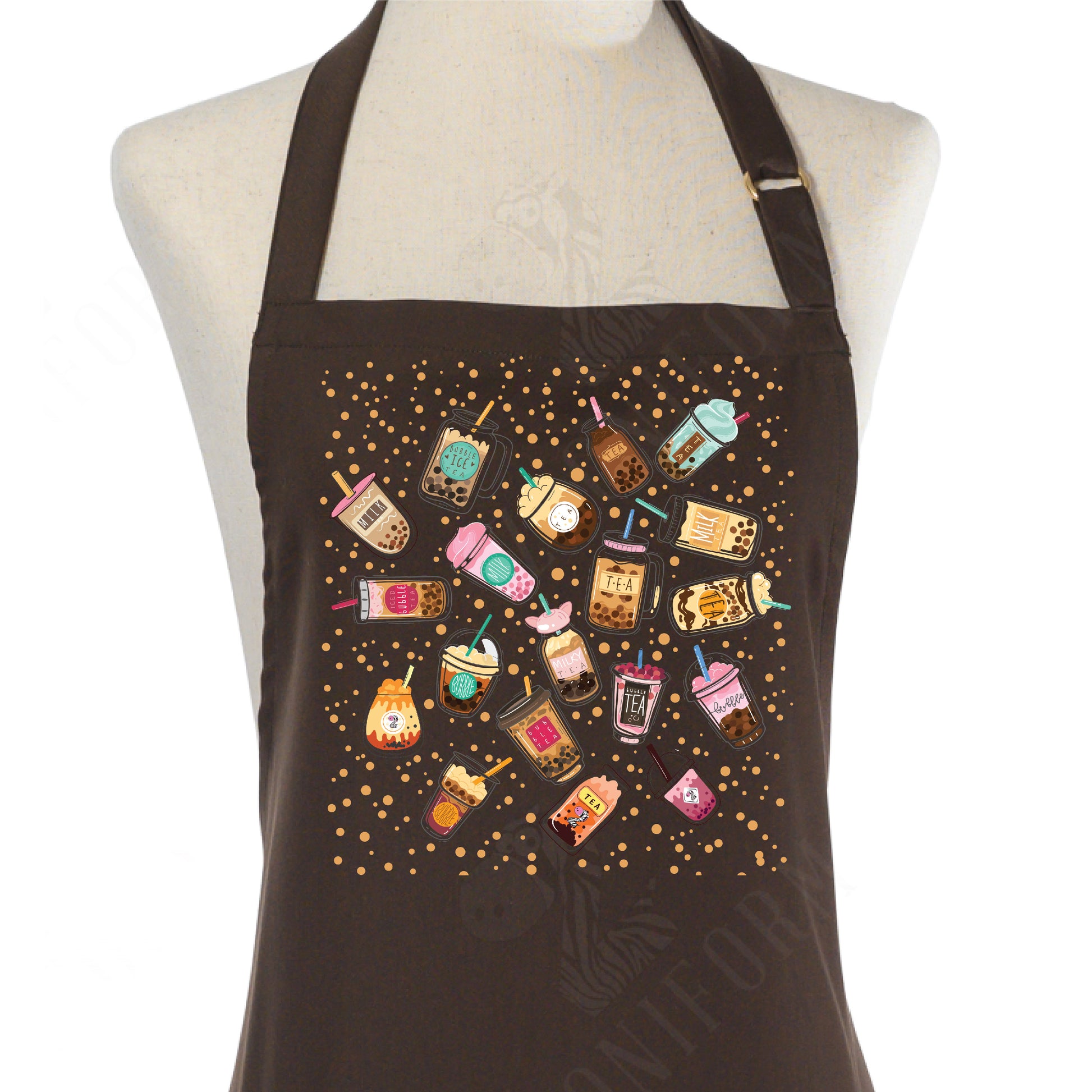 This Boba Cups Apron is the perfect accessory for any boba tea enthusiast. It features exclusive boba tea designs and is durable and lightweight. Its polyester construction and adjustable neck straps ensure a snug and comfortable fit. With its unique and stylish design, you can serve boba tea with confidence.