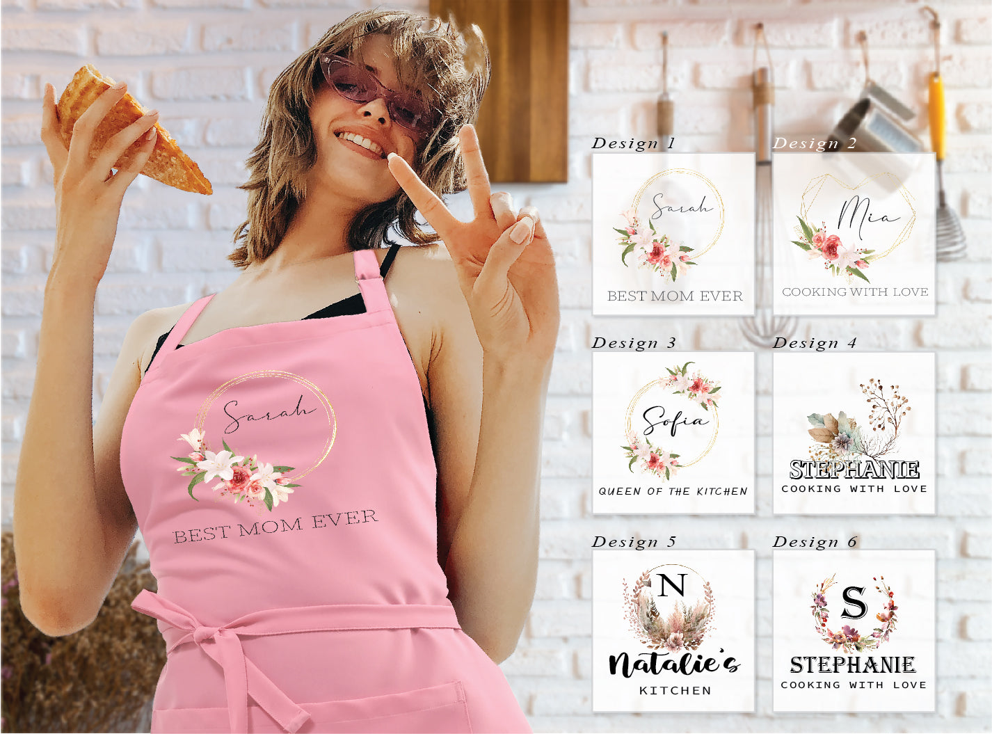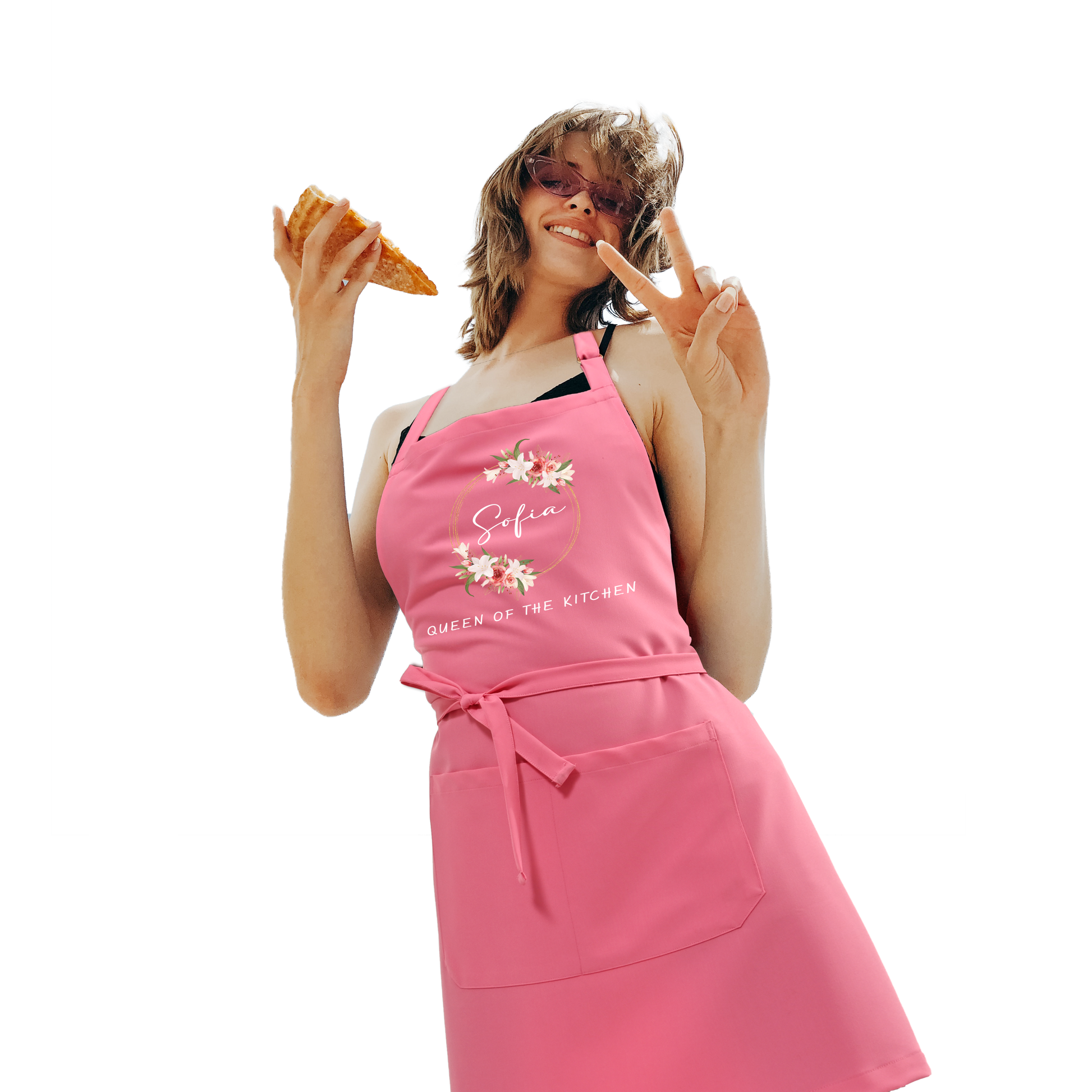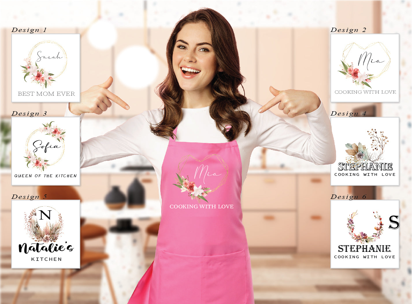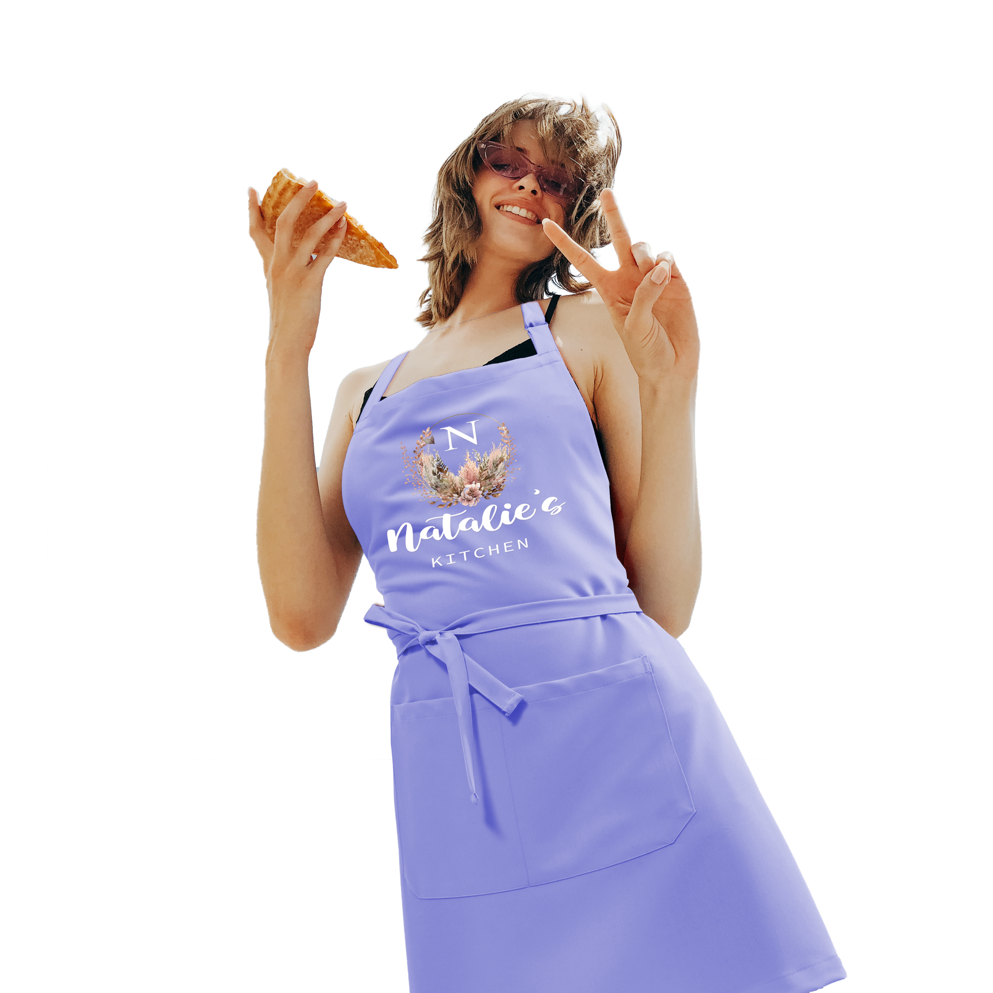 Stay stylish and protected while cooking with this floral design kitchen apron. This apron is customized with any name you choose, making it a personalized and thoughtful gift. With a comfortable and adjustable fit that is made for long wear, this apron is ideal for both professional chefs and at-home cooks.