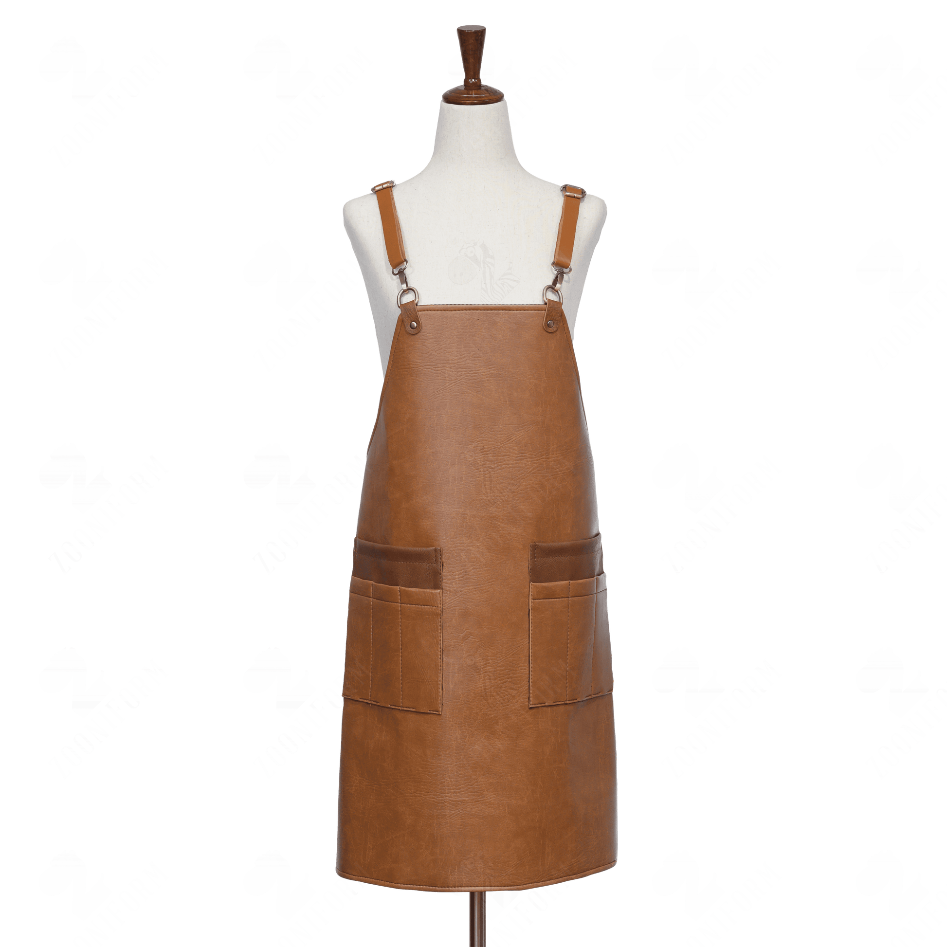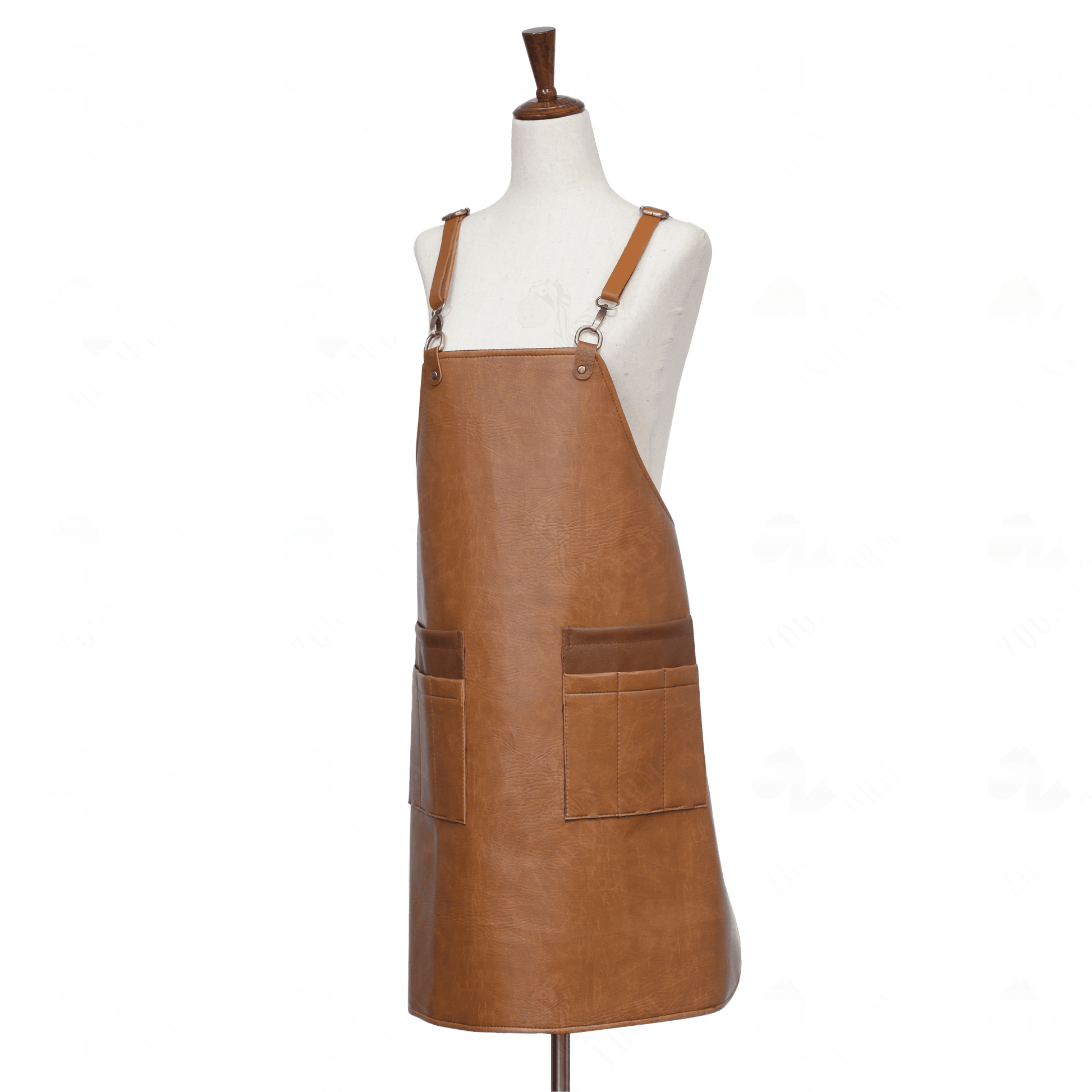 The aprons have adjustable straps that tie around the waist. The cross-back aprons are cuter, comfier, and more convenient in home kitchen or at restaurant kitchen.