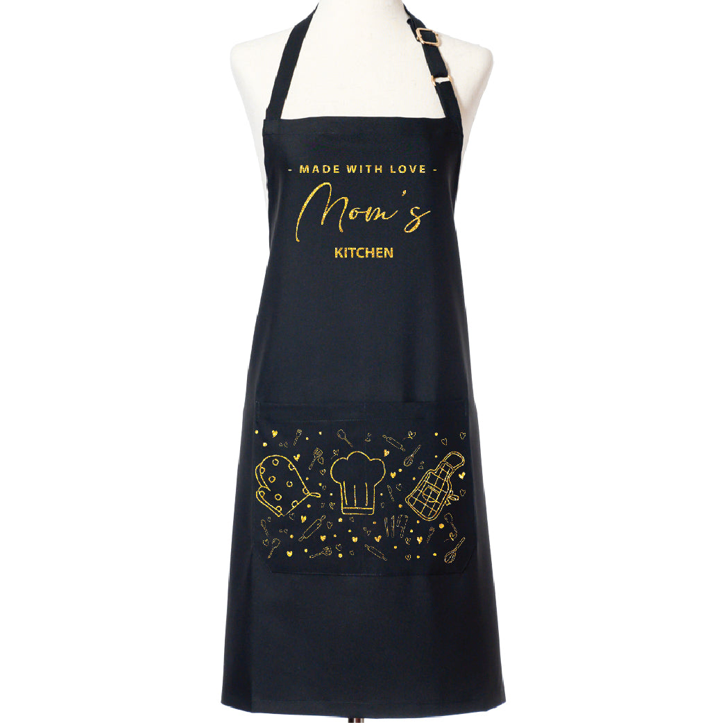 Mom's Kitchen Apron is a special gift to celebrate Mother's Day. It is made from durable materials with love, designed for long-term use while cooking meals for family and friends. Show your love and appreciation this Mother's Day with a special apron!
