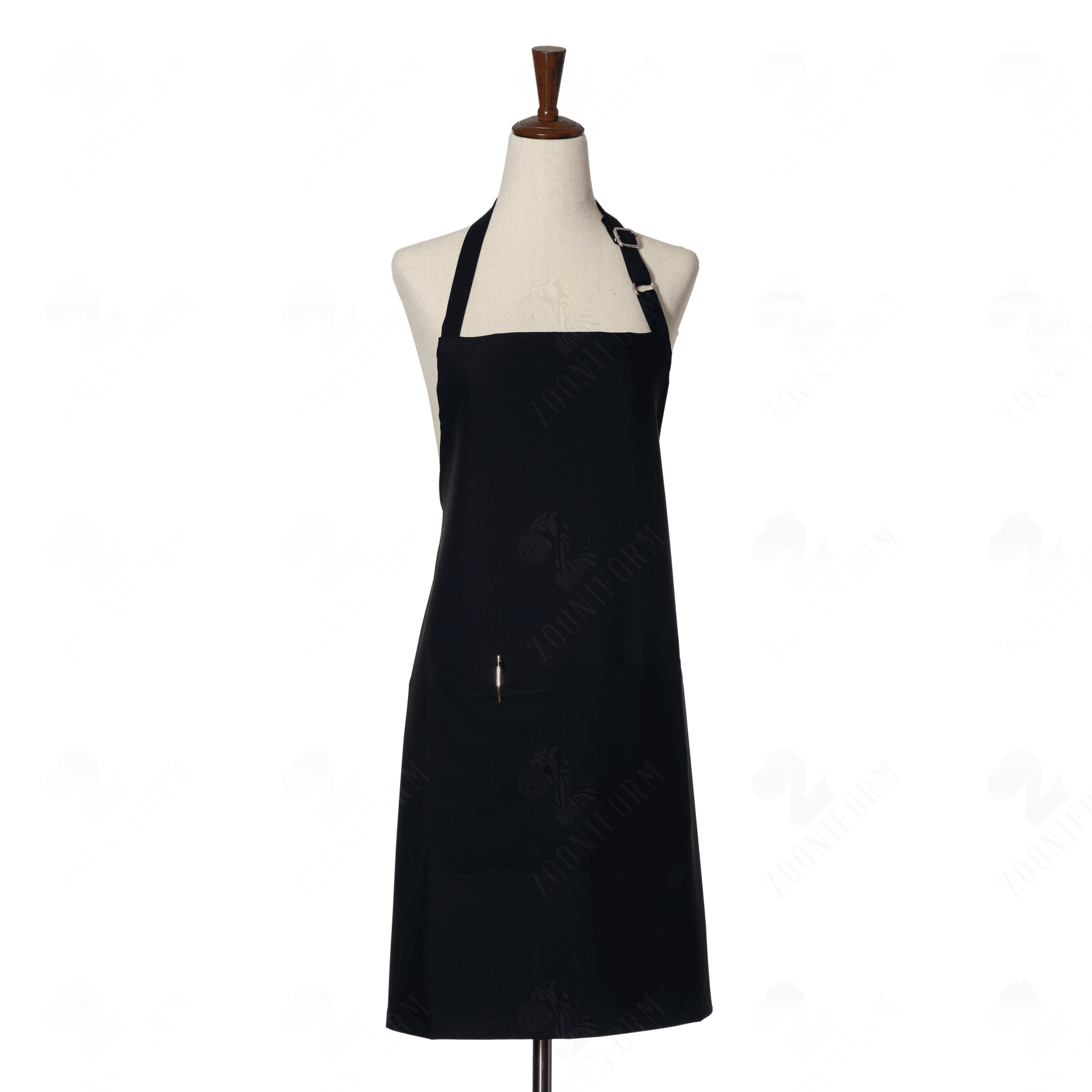 This Cotton Black Bib Apron has two generous pockets and an adjustable neck strap for a secure fit. The apron is made of a soft cotton material, providing comfort and long-term durability. The pocket design and adjustable neck strap make it ideal for kitchen work.