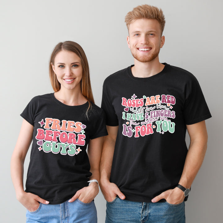 Discover the ideal present for Valentine's Day. Our Couple Unisex T-shirts are perfect for the occasion.